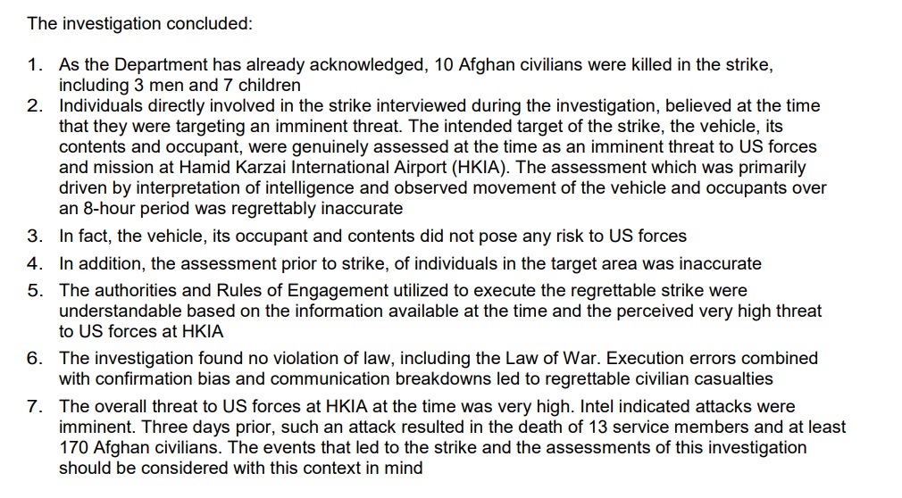 WASHINGTON (AP) Pentagon watchdog finds no negligence in mistaken drone strike that killed Afghan civilians, official tells AP.Link to tweet