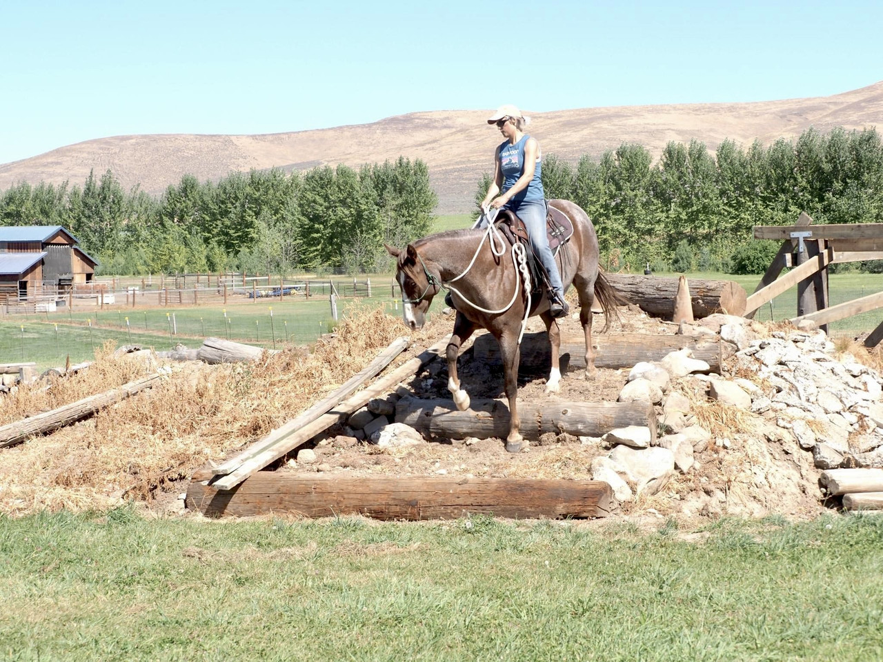 It takes a gifted horsewoman to instill the level of trust demonstrated by these handsome horses as they traverse obstacles most horses would shy away from.